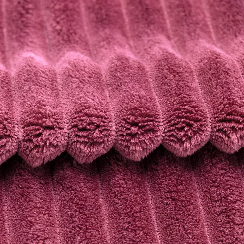 Jumbo cord 1 side brush fabric is a thick, ribbed corduroy known for its bold texture and vintage flair. It’s soft to the touch yet structured enough for durable use. Its wide ribs add depth, warmth and a visually rich finish. Length of pile: 7 mm. Stripe Width: 18 mm.