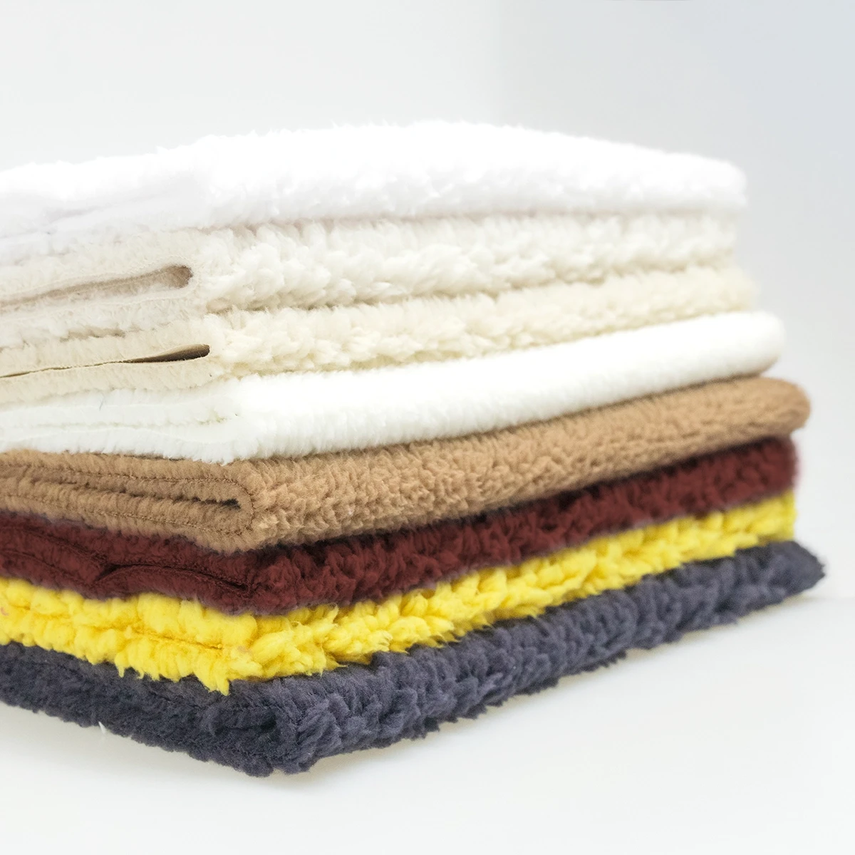 ผ้าขนแกะ เป็นผ้าขนทียมที่มีสัมผัสคล้ายกับขนแกะจริง ให้ความอบอุ่นได้ดีเยี่ยมแต่ยังคงมีน้ำหนักที่เบาและสัมผัสที่นุ่มฟู เหมาะอย่างยิ่งสำหรับใช้เป็นผ้าซับใน ผ้าห่ม เสื้อฮูด และเสื้อกันหนาว